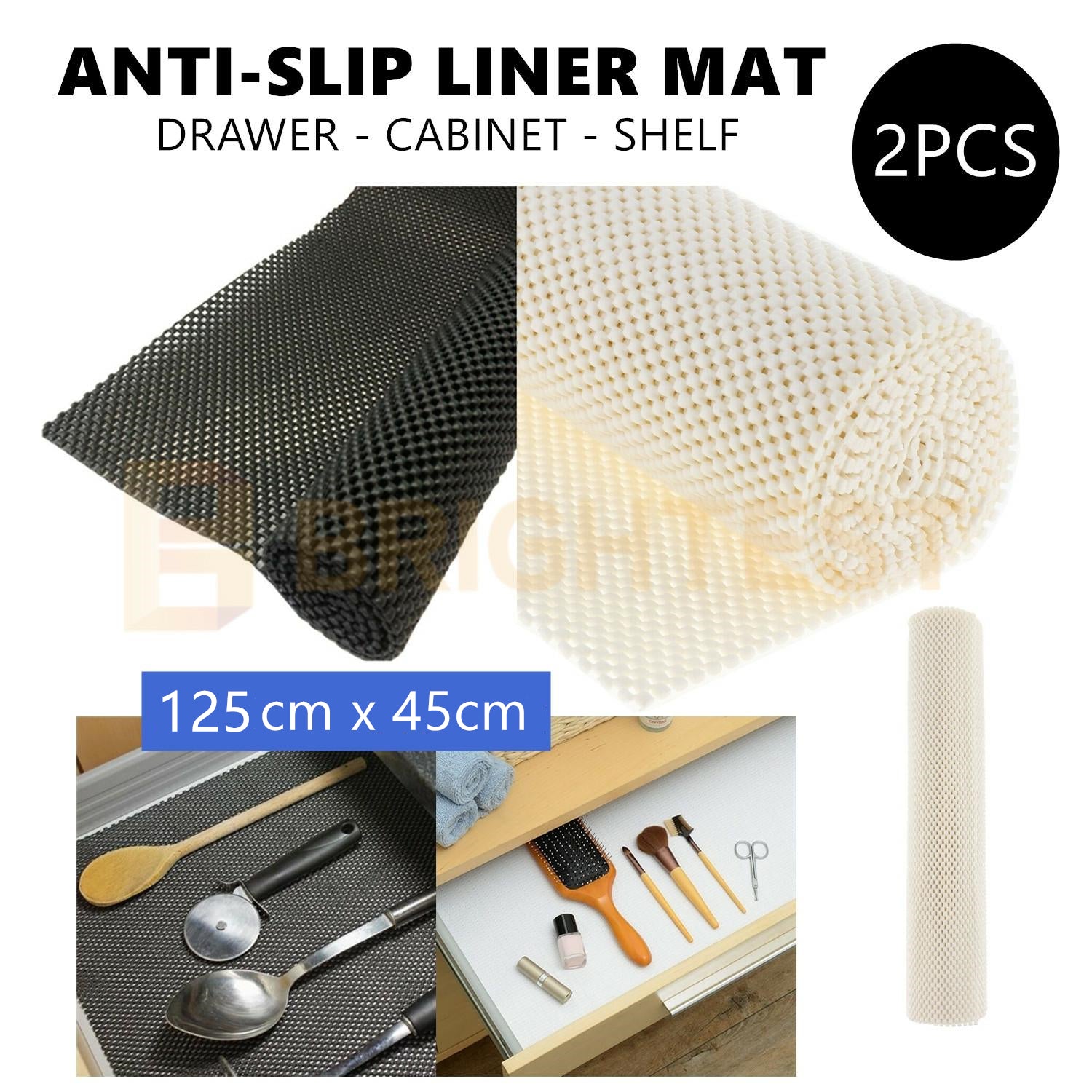 2pcs Anti Non Slip Drawer Liner Mat Grip Roll Matting Cabinet Kitchen 125cm x 45cm