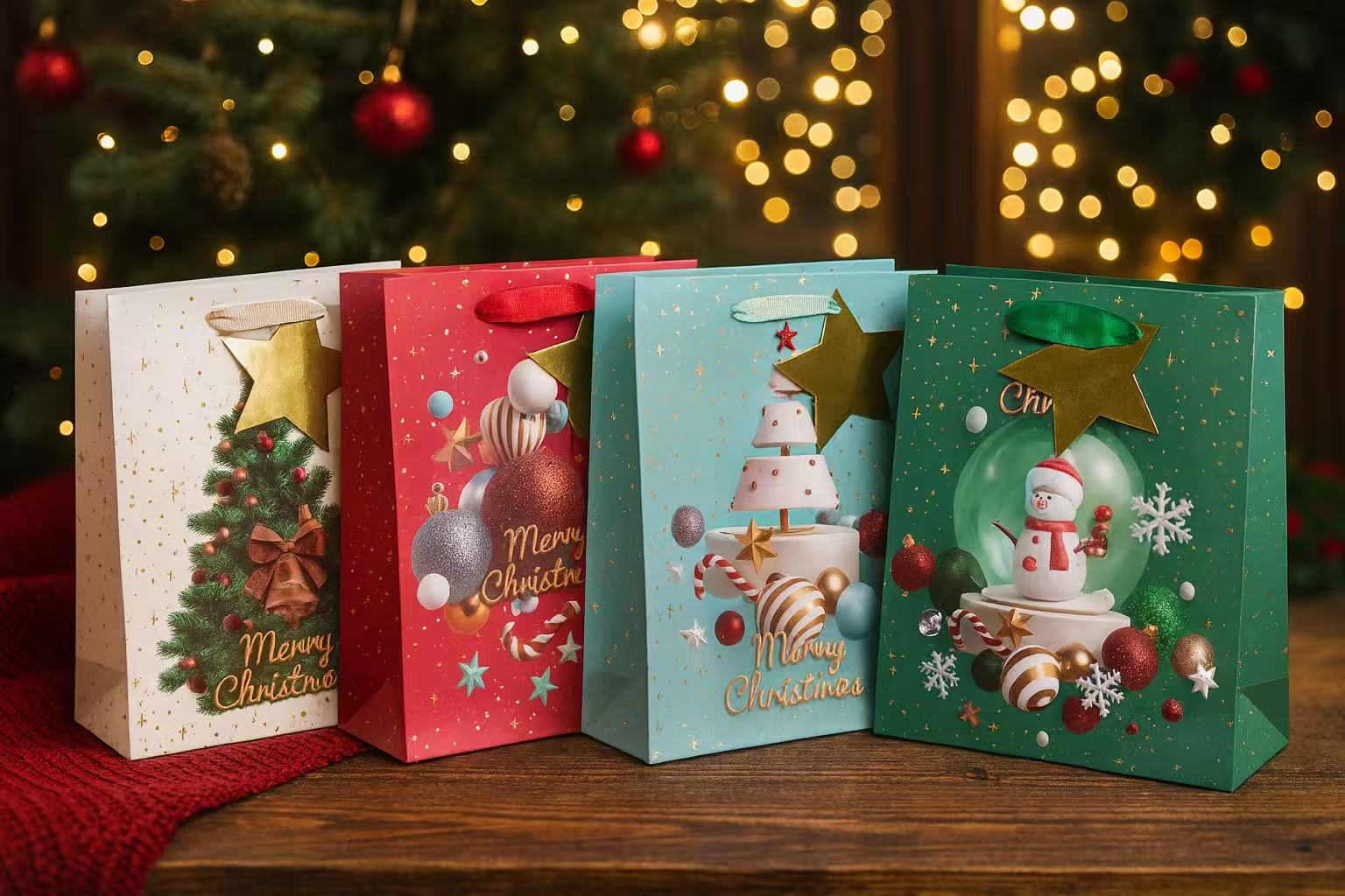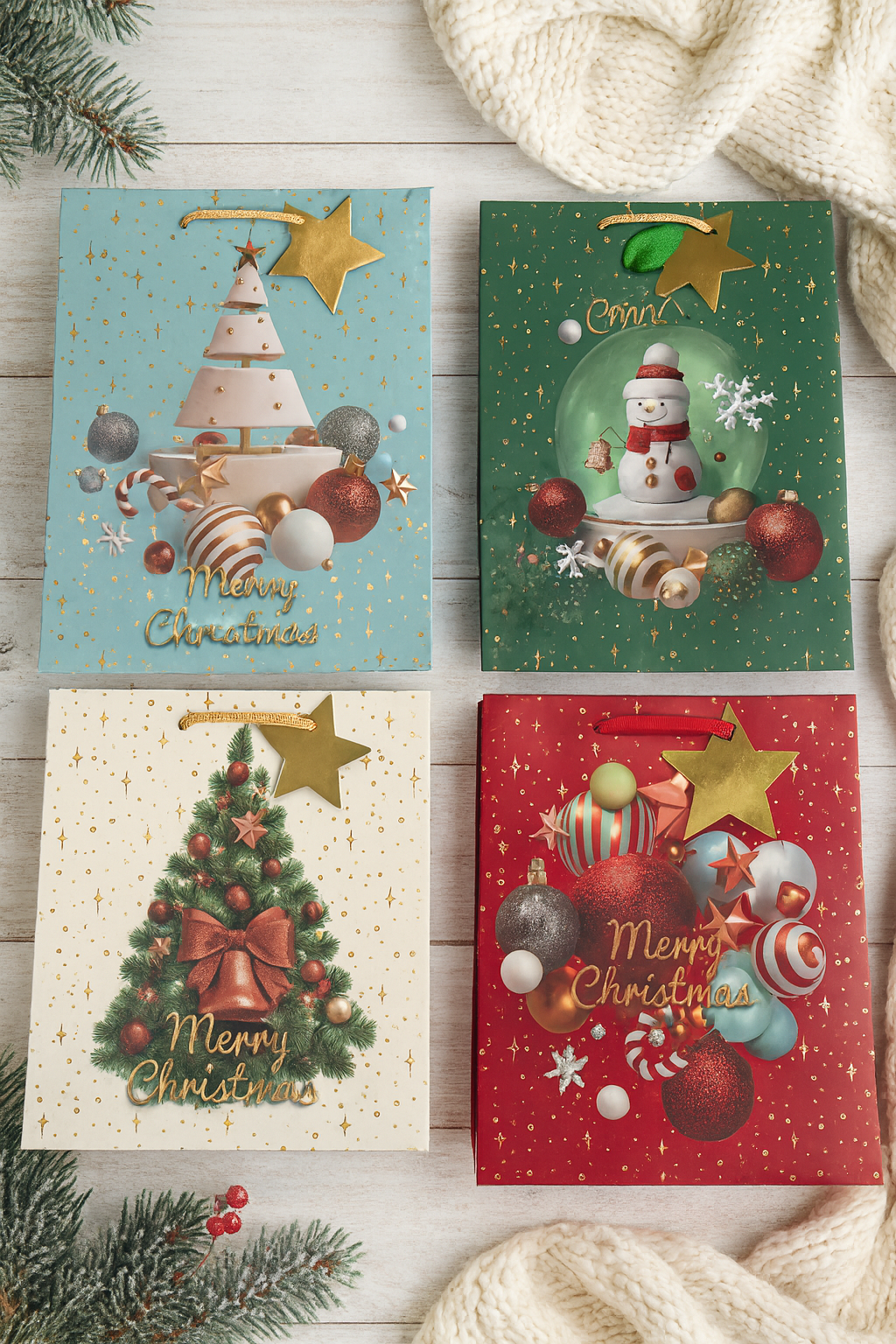 Perfect for family, friends, teachers, corporate gifting and Christmas parties. Each bag features vibrant holiday artwork including Christmas trees, ornaments and festive colours. Easy, quick and elegant—no wrapping required!